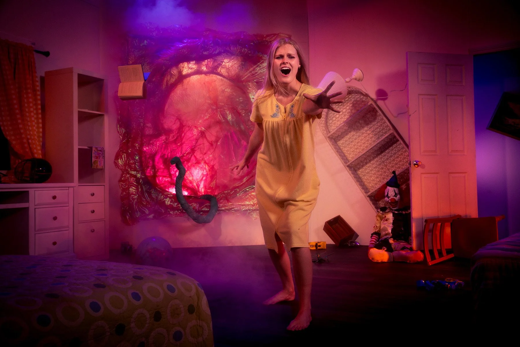 photobooth concept by me. for this photobooth, we took inspiration from the film’s climax and created our very own portal. costume and wig sourced and styled by me. to capture carol anne’s childlike innocence, i styled harley in an 80s era nightshirt with fuzzy slippers. i also added a bang piece cut and colored to match her hair for a little extra youth.