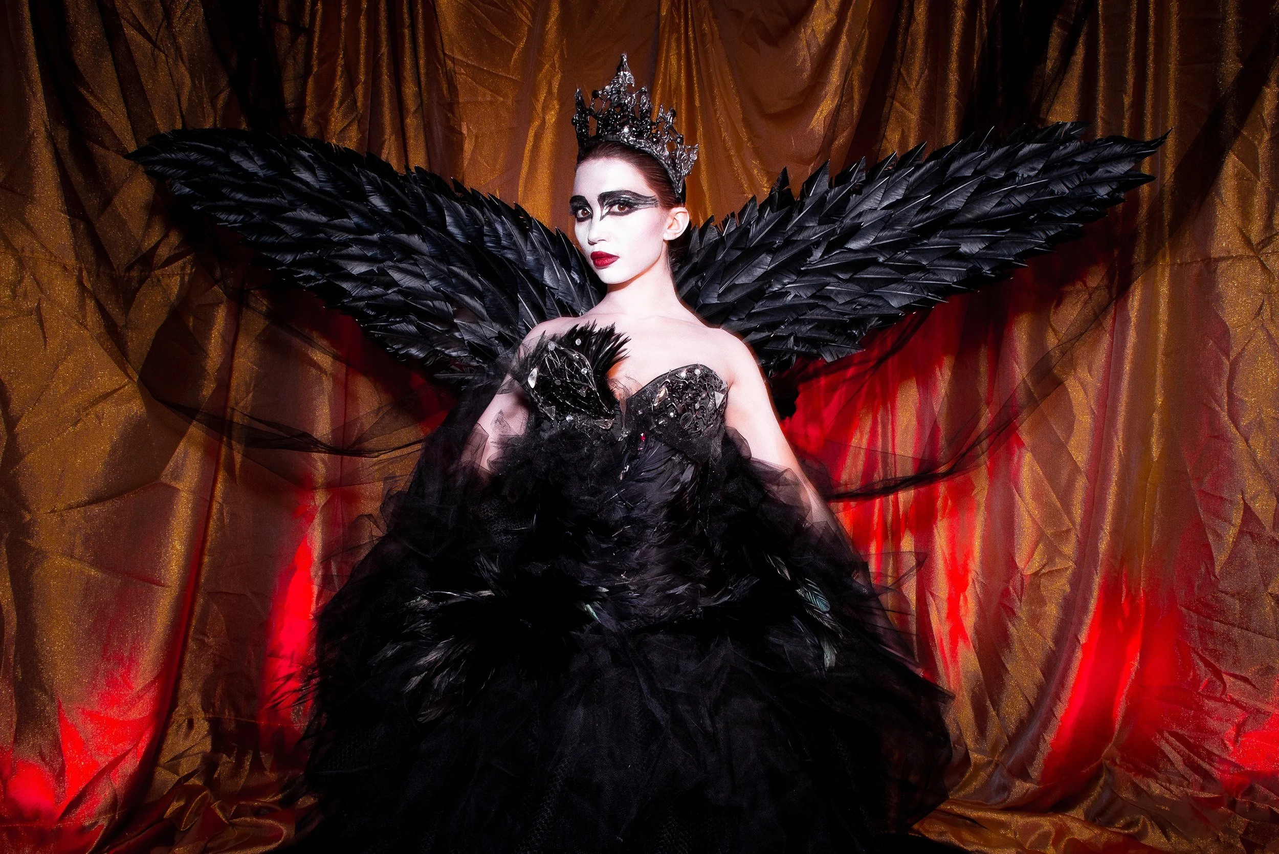 costumes handmade by me. rhinestoned, feather-filled corsetry, an abundance of tulle, matching headpieces. inspired by rodarte’s original pieces.