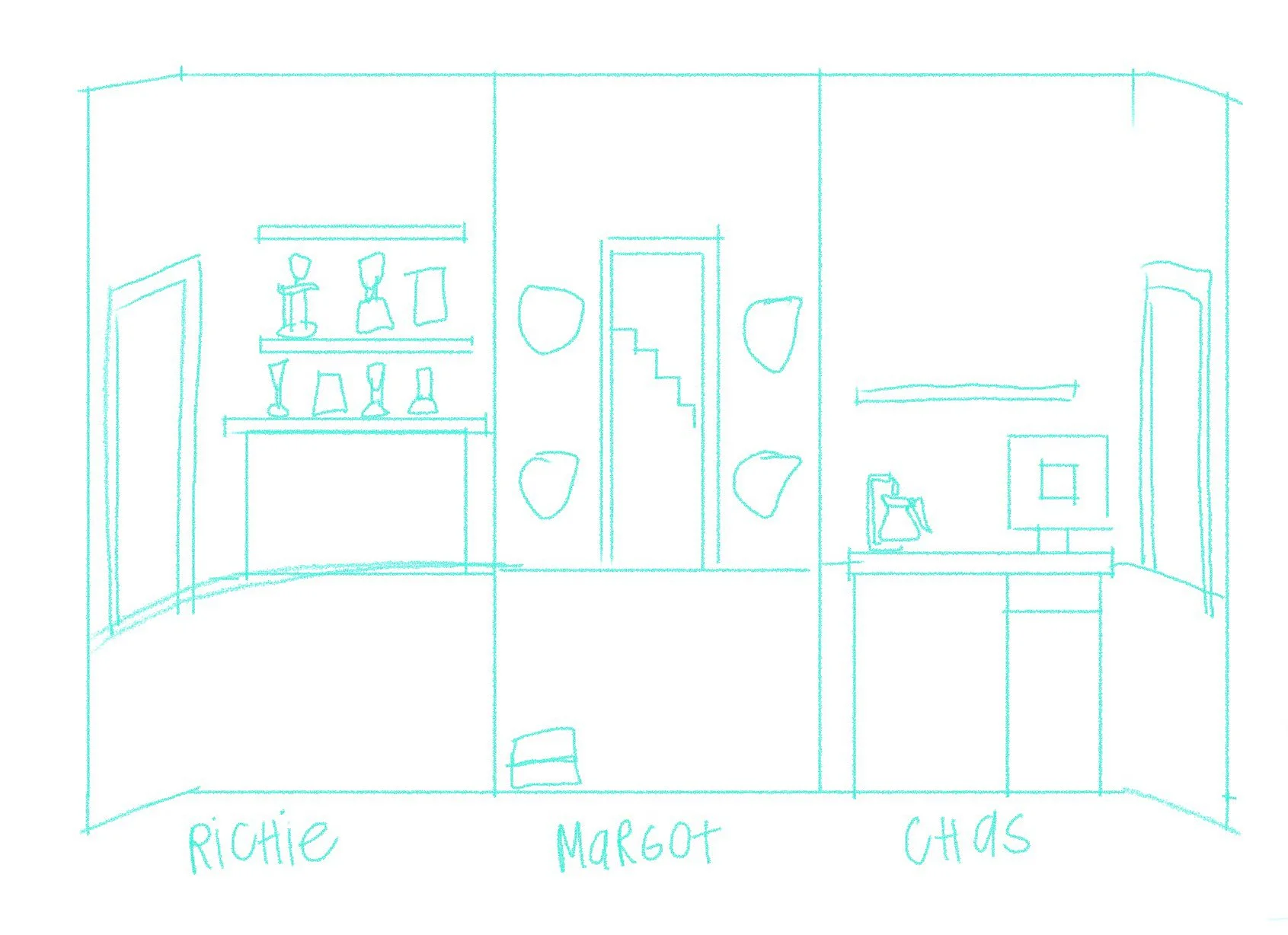 costumes and wig sourced and styled by me. reinventing young margot tenenbaum, now that she’s all grown up. margot’s look is iconic – a striped polo dress, oversized fur coat, sensible loafers and baby pink gloves (complete with missing finger). to complete it, i cut and colored a light blonde wig and fashioned a red barrette. photobooth concept and creative direction by me. storytelling through triptych. i wanted this set to feel voyeuristic, as if you were peeking into the lives of each child. they’re vignettes of each tenenbaum child’s essence, juxtaposed to portray the inner eccentricities of the perfectly (dys)functional family. margot’s room uses a bold zebra print wallpaper with books and a typewriter, richie has a hand-painted wallpaper lined with shelves of tennis trophies, and chas is 70s office core, complete with boxy, desktop computer, rotary phone, and coffee maker.